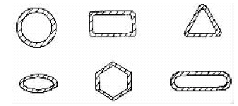 空心封閉斷面的鋼材稱為鋼管。最常見的鋼管斷面形狀一般為圓形。但是也有很多種斷面形狀很復雜的異型鋼管,如下圖所示。按生產方法可分為無縫鋼管與有縫鋼管(又稱焊接鋼管)兩大類。